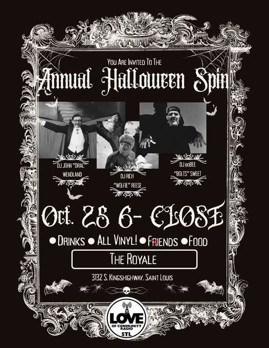 On Saturday October 25, bobEE Sweet, John Wendland and Rich Reese — all former DJs of KDHX and future DJs of our new community radio station — will get you in the Halloween spirit (get it?) with an all vinyl Spin Spooktacular at The Royale from 6PM to close. This will be a scary good night at one of our favorite joints in town!