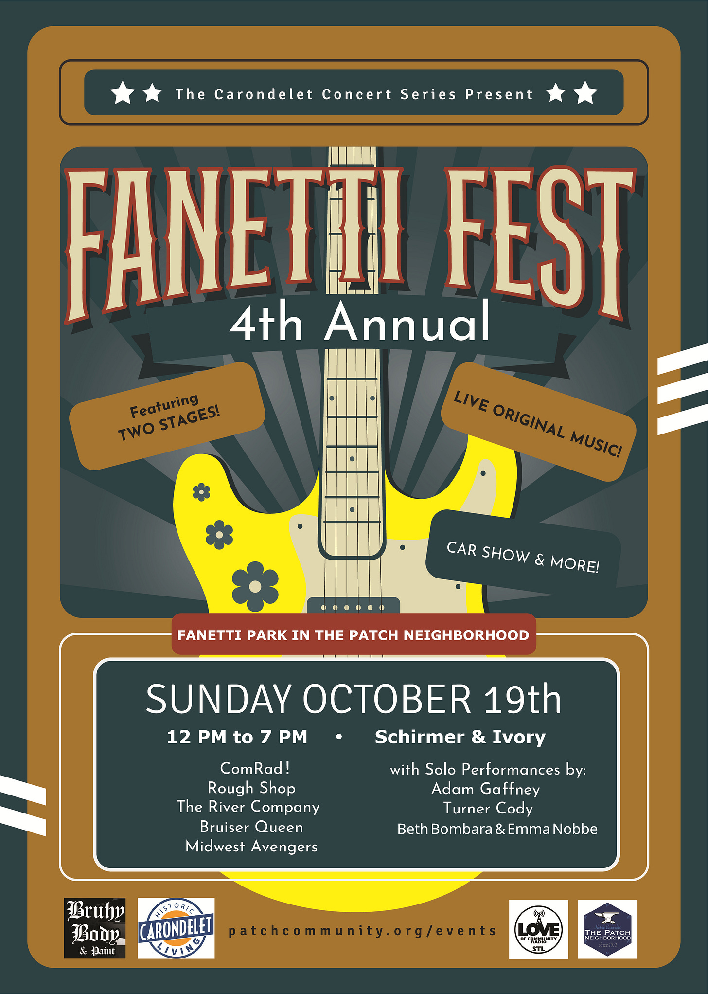 This Sunday, October 19, LOVE of Community Radio STL is proud to partner with Carondelet Living for Fanetti Fest Four! This free music festival features eight St. Louis bands performing on two stages in Fanetti Park, right across the street from Stacked STL Burgers in the Carondelet / Patch neighborhood (7637 Ivory St, St. Louis, MO 63111).